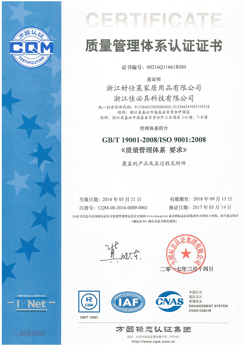 公司歷經(jīng)二十余年不斷開拓進取,在貨架及倉儲物流設(shè)備和塔內(nèi)件裝備領(lǐng)域建立了獨特的競爭優(yōu)勢,在業(yè)界樹立了良好的聲譽,并擁有“HOMUST佳必具”和“中達智能倉儲”兩大自主品牌。公司通過了質(zhì)量、環(huán)境、職業(yè)健康安全管理體系認證,以及歐盟CE、美國NSF、FSC、BSCI、SMETA、SEDEX和FCCA等認證。