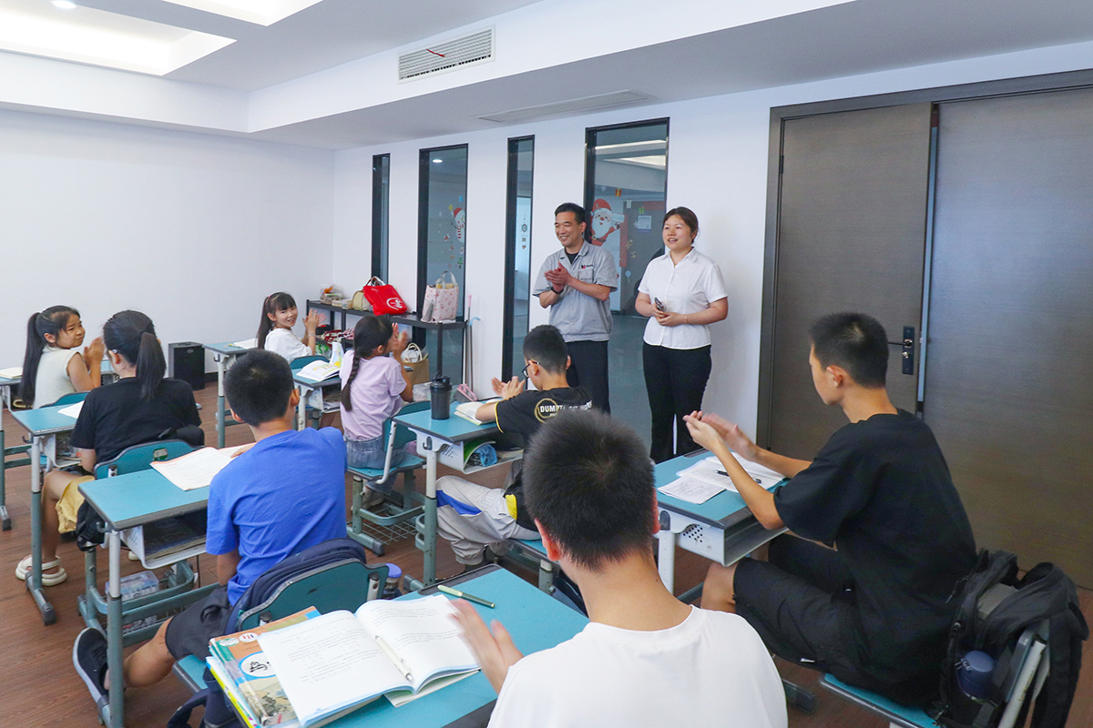 追溯到四十年前,那時(shí)候的中達(dá)作為一家鄉(xiāng)鎮(zhèn)企業(yè),其內(nèi)部托兒所成為了很多“廠二代”共同的記憶,那里不僅承載著歡笑,也種下了企業(yè)關(guān)愛的種子,培育出了跨代際的深厚友誼,而二十年前曾受益于托兒所的孩子們反哺企業(yè),促成了員工子女暑期英語班的成立,為許多孩子的英語啟蒙鋪路,更有參與者因此踏上了海外求學(xué)或工作的旅程,時(shí)至今日,很多曾經(jīng)受益于中達(dá)托兒所和英語班福利的孩子,如今已長大成人,他們滿懷感激之情回歸并加入了中達(dá)這個(gè)溫暖的大家庭,成為了企業(yè)發(fā)展的新生力量和中流砥柱。為了播下這顆中達(dá)“種子”,也為了解決員工子女“暑假?zèng)]人管或管不好”的問題,幫助員工減輕子女暑期托管負(fù)擔(dān),幫助員工平衡工作與家庭責(zé)任,建立起更多“廠三代”彼此的友誼,以期更好反哺企業(yè),并且集團(tuán)黨工團(tuán)婦等群團(tuán)組織體系健全,以往成功舉辦了諸如職工運(yùn)動(dòng)會(huì)、春節(jié)聯(lián)歡會(huì),還有已舉辦18年的大學(xué)生體驗(yàn)生活活動(dòng)等大型活動(dòng),完全有能力承辦公司暑托班活動(dòng),故公司于今年四月確定暑托班開設(shè)方案,并在公司黨、工、團(tuán)、婦的統(tǒng)籌下有序推進(jìn),暑托班的順利開班也得到了縣教育局、縣婦聯(lián)、團(tuán)縣委、縣青少年宮、百步鎮(zhèn)黨委、百步鎮(zhèn)政府、百步宣傳部、百步鎮(zhèn)婦聯(lián)、百步鎮(zhèn)文化站、百聯(lián)村、農(nóng)豐村、于城幼兒園、沈蕩幼兒園、百步中學(xué)、百步幼兒園等單位的大力支持。