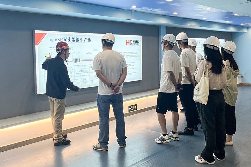 在日照,學(xué)員們由日照鋼鐵助理副總裁陳貴江、上海地區(qū)銷售總經(jīng)理魏本軍帶領(lǐng),參觀了企業(yè)展廳,聽取了日鋼集團(tuán)發(fā)展歷史和產(chǎn)業(yè)園區(qū)布局介紹。在ESP制造部喻堯部長的帶領(lǐng)下,學(xué)員們參觀了ESP以及鍍鋅生產(chǎn)線。參觀生產(chǎn)結(jié)束后還舉行了座談交流,就企業(yè)管理、業(yè)務(wù)合作進(jìn)行了深度交流。