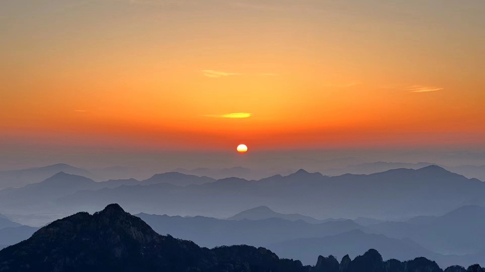 次日凌晨四點(diǎn),閃耀青年們都早早起床觀看日出,此時(shí)山頂早已人山人海,期待日出的美景。太陽(yáng)的升起讓黑暗天空猛地裂開一道口子,山谷亮堂了起來(lái),云海、蟲鳴、鳥啼都變得清晰起來(lái),一切都散發(fā)著生機(jī)。在黃山看日出,心曠神怡,讓人充滿希望與光明,希望我們每個(gè)人都能像初升的太陽(yáng),永遠(yuǎn)充滿朝氣。