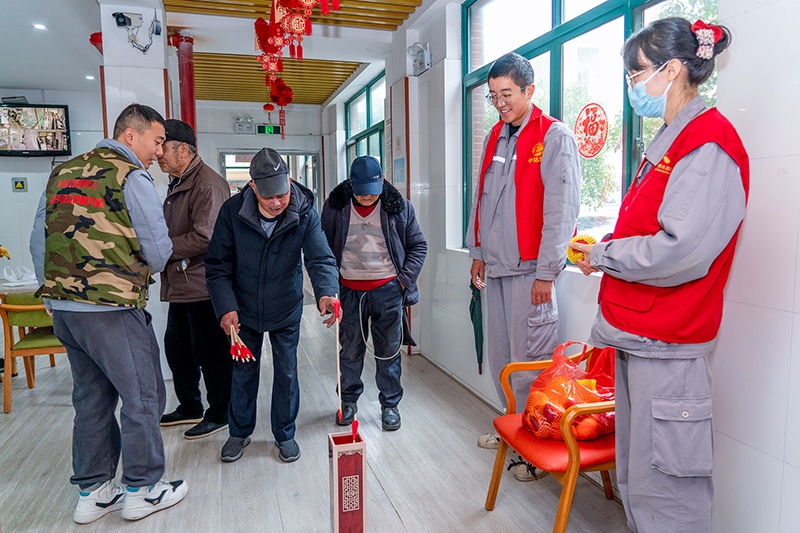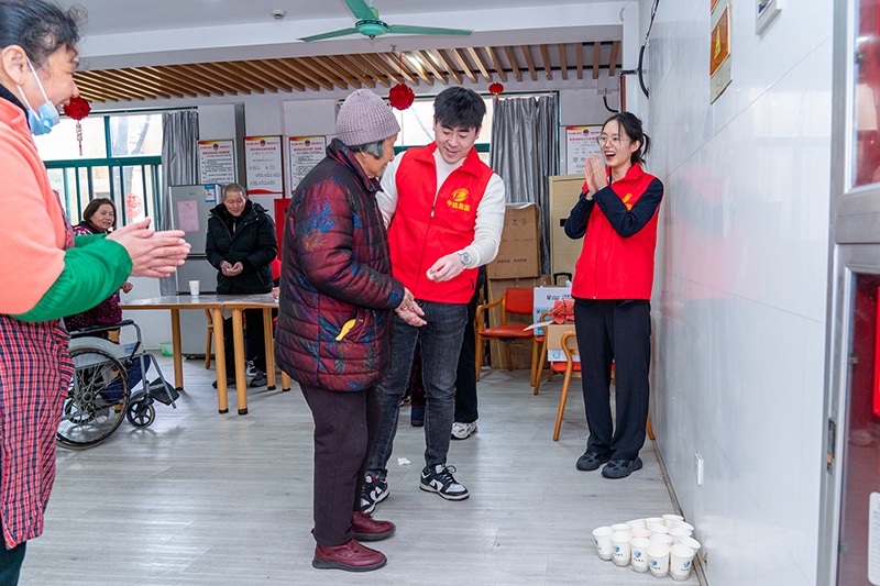 在活動正式開始前,集團以及各子公司青年志愿者們提前來到百步敬老院,對游戲場地作了精心布置,并滿懷熱情迎接老人們前來參加活動。“沾紙杯投球”“翻翻樂”“投壺”“水瓶快跑”“默契挑戰(zhàn)”等系列趣味游戲,形式多樣、輕松好玩,給老人們增添了許多快樂,也增強了青年員工與老人們的交流互動。